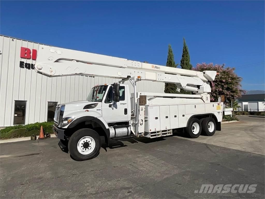 Description: 2012 International 7400 6x6 Altec A77T-E93 98' Bucket Truck, MaxxForce DT @ 300HP, Allison Automatic, 6×6, Air Brakes, A/C, Altec A77T-E93 Articulating & Telescoping Boom, 93′ Platform Height, 98′ Working Height, 46′ Side Reach, 2 Man Tub @ 800LB Capacity, Material Handler, Continuous Rotation, Hydraulic Tool Circuit, Upper & Lower Controls, Altec ISO-Grip Upper Controls, Utility Bed, 4 Hydraulic Outriggers, Dielectric Tested & Certified, Pintle Hitch, Trailer Air Brakes, 18K Front, 40K Rears, 58,000 GVWR, 5,686 PTO Hours, 8,224Total Truck Hours, Odometer Reading 44,087 Miles