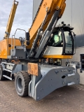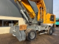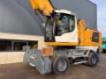 This Liebherr LH40 Port is equipped with a D934 A7-25 4 cilinder diesel engine (155kW) with just 697 working hours on the service meter. AG17 work equipment with 10.6m banana boom and 7.7m straight stick made for aggregates handling. Heavy duty undercarriage, check valves all over, third ERC cilinder for fuel savings, central lubrication, full rubber tires, side and rear view camera, airco, radio etc. Also extra body platform included in front of cabin (not shown in the pictures).