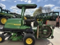 Ex Tournament Support 9009A, 41.1 kW (55.9 hp) diesel engine delivering strong performance in heavy turf conditions. LoadMatch™ system automatically maintains power to the decks by reducing traction speed when necessary, improving cut quality in tough grass. TechControl™ display (passcode‑protected) enabling precise control of mow/turn/transport speeds, plus onboard diagnostics for maximum uptime. AutoPedal™ system adjusts engine RPM via foot pedals for quieter operation and fuel efficiency. Compatible with John Deere Connectivity Solutions for enhanced fleet and course management. Five independent 27‑inch rotary decks providing a 9‑foot (108 in / 2.74 m) cutting width for high productivity. Deep‑shell, stamped 10‑gauge steel deck design for durability and consistent cut quality. Asymmetric rear‑discharge deck for improved airflow, superior clipping dispersal, reduced clumping, and cleaner after‑cut appearance, Sun canopy, Warranty Until 08/05/2028 or 1200 hours.