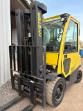 Hyster 2.0 Gas forklift truck, 2016 model with side shift and fork positioner, full cab, this is a stunning high spec machine, 4950mm lift height with a free lift triple mast.