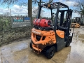 Doosan G20GP With 3183 Hours. Lifts 2 Tonne, Max Height 4.7m, Mitsubishi Engine, LPG, Triple Free Lift Mast, Container Spec, Side Shift, Working Lights. Supplied With Pallet Forks.