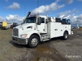 Paccar PX-9 6 Cylinder 8.9 L Diesel 300 hp Engine, 2015 US EPA Label, Requires Diesel Exhaust Fluid, Allison Automatic Transmission, 12000 lb Front Axle, 21000 lb Rears, 5.25:1 Axle Ratio, 33000 lb GVWR, Aluminum Wheels, 11R22.5, Spring Suspension, 145 in Wheelbase, PTO, 14 ft Body, Hydraulic Stabilizers, 2005 IMT 10000 lb 2 Section Hydraulic Crane, Wired Remote Control, Miller 10 kW Gasoline Generator Set, IMT PTO Air Compressor, Miller 10 kW 200 A Gasoline Welder