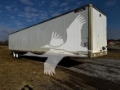 Description: Length 53' Width 102" Height 13'6" Body Inside Width 99" Inside Height 110" Door Opening 105" Sides PLATE Color White Decals None Post Spacing 4' E-Track 3 Full Rows Nose Lining Plywood Rear Doors Rollup Roof Aluminum Rear Frame Painted Steel Bumper Painted Steel Floor/Body Threshold Plate 28" Suspension # of Axles 2 Suspension Type Air Ride Tire Size 11R22.5 Wheels Steel Tire % 90% Brake % 50% UnderFrame King Pin Setting 36" 5th Wheel Condition Good Cross Member Center 12" Landing Gear Two Speed
